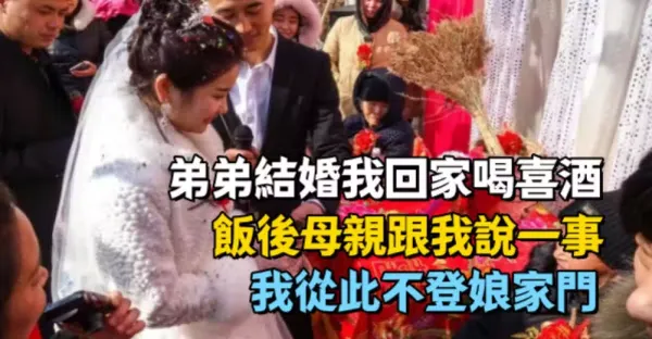 弟弟結婚我回家喝喜酒,飯後母親跟我說一事,我從此不登娘家門