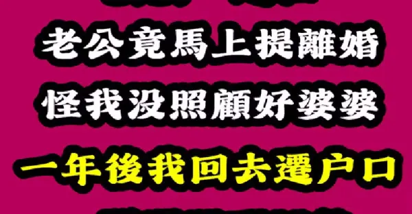 辭職照顧婆婆三年!婆婆一過世「老公竟馬上提離婚」怪我沒照顧好婆婆...「一年後我回去遷戶口」一開門哭到腿軟:難怪對我那麼狠