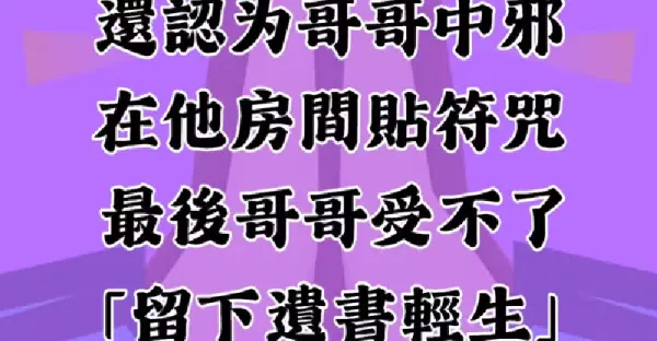 媽媽很討厭哥哥女友,不僅逼迫哥哥分手,還認為哥哥中邪,在他房間貼符咒!最後哥哥受不了「留下遺.書.輕.生」打開一看他卻說:「沒辦法原諒的人是我自己...」