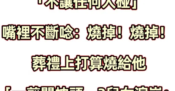 我與老公是重組家庭,幾天前老公為了救我兒子喪命,讓我悲痛不已。但在葬禮當天,兒子卻不停抓著衣服,「直到我把他手扯開後~」,我直接把靈堂給砸了…