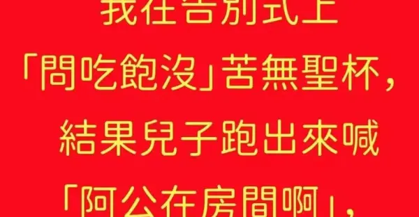 爸爸最近走了,我在告別式上「問吃飽沒」苦無聖杯,結果兒子跑出來喊「阿公在房間啊」,轉頭一看我立刻淚崩