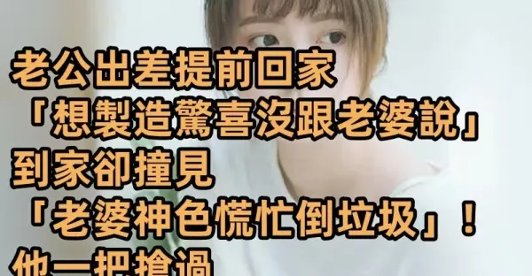 老公出差提前回家「想製造驚喜沒跟老婆說」,到家卻撞見「老婆神色慌忙倒垃圾」! 他一把搶過「垃圾袋掉出熱呼呼一團」當場淚崩:好險提早回來…