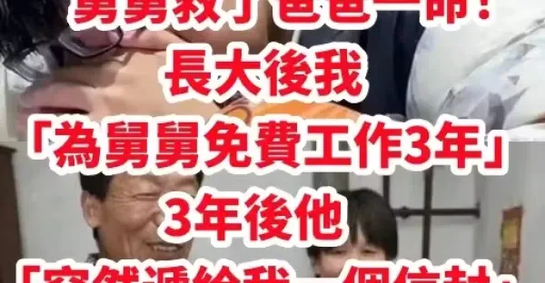 舅舅救了爸爸一命!長大後我「為舅舅免費工作3年」 3年後他「突然遞給我一個信封」打開後我傻了