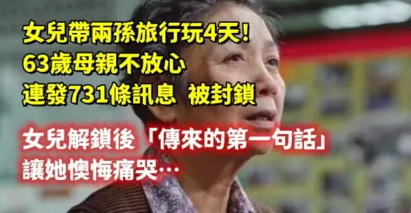 女兒帶兩孫旅行玩4天! 63歲母親不放心「連發731條訊息」被封鎖,女兒解鎖後「傳來的第一句話」讓她懊悔痛哭!