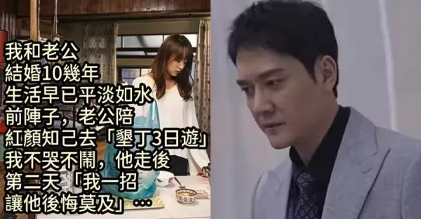 我和老公結婚10幾年,生活早已平淡如水。前陣子,老公陪紅顏知己去「墾丁3日遊」我不哭不鬧,他走後第二天 「我一招讓他後悔莫及~」