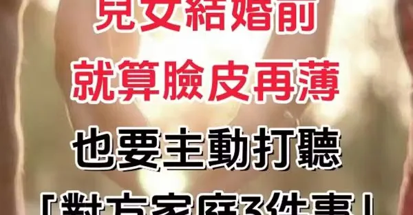 兒女結婚前...就算臉皮再薄,也要主動打聽「對方家庭3件事」:餘生才能安穩!