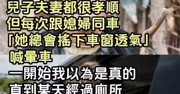 兒子夫妻都很孝順!但每次跟媳婦同車「她總會搖下車窗透氣」喊暈車 一開始我以為是真的,直到某天經過廁所「徹底明白背後原因了」