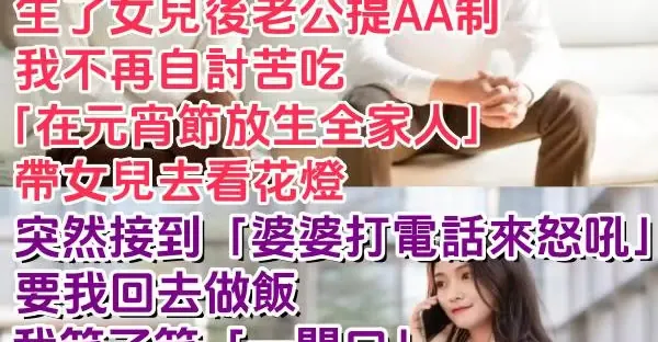 生了女兒後老公提AA制!我不再自討苦吃「在元宵節放生全家人」帶女兒去看花燈 突然接到「婆婆打電話來怒吼」要我回去做飯,我笑了笑「一開口」婆婆愣住了~