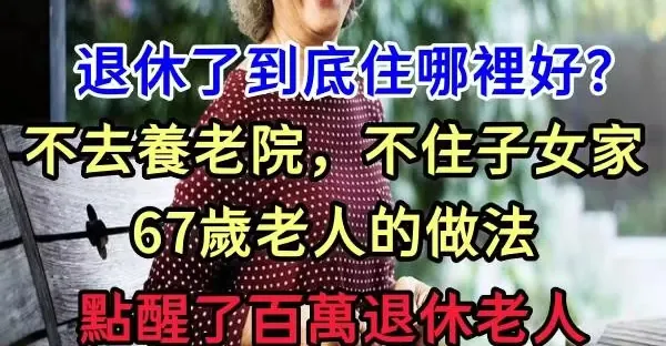 退休了到底住哪裡好?不去養老院,不住子女家,67歲老人的做法,點醒了百萬退休老人,一定要看完!!