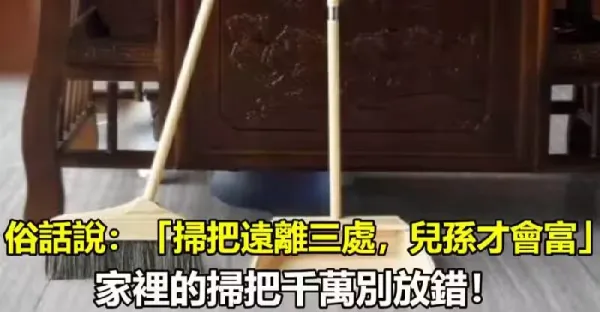 俗話說:「掃把遠離三處,兒孫才會富」,家裡的掃把千萬別放錯