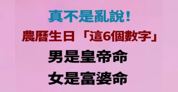 真不是亂說!農曆生日「這6個數字」男是皇帝命「女是富婆命」家裡有一位,錢多得花不完