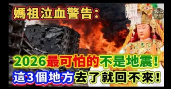 媽祖泣血警告:2026最可怕的不是地震!!! 這3個地方去了就回不來