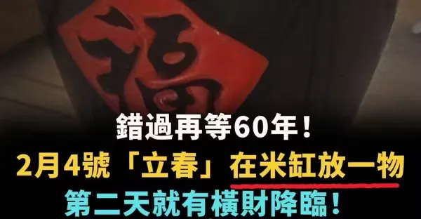錯過再等60年!!! 2月4號「立春」在米缸放一物, 第二天就有橫財降臨 ,再窮都能改命