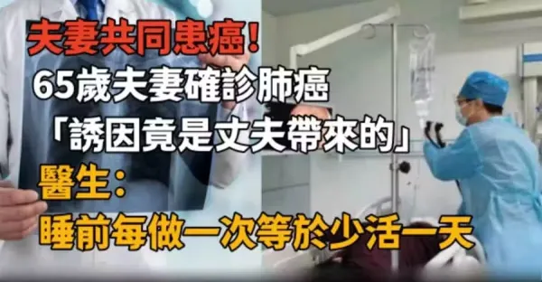 夫妻共同患癌!65歲夫妻確診肺癌「誘因竟是丈夫帶來的」 醫生:睡前每做一次等於少活一天