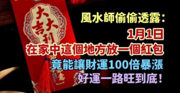 風水師偷偷透露:1月1日在家中這個地方,放一個紅包,竟能讓財運100倍暴漲,好運一路旺到底…