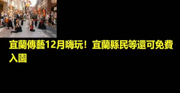 宜蘭傳藝12月嗨玩!宜蘭縣民等還可免費入園