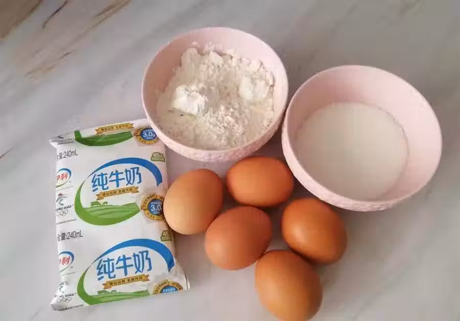 1、雞蛋、牛奶、低筋麵粉、白砂糖準備好,還有玉米油。