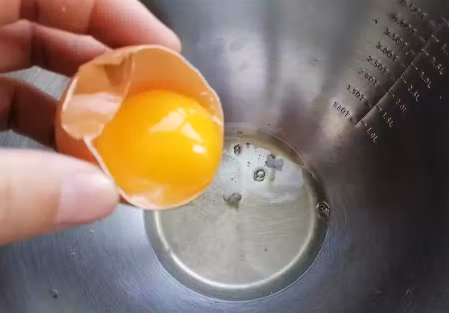注意:蛋清裡一絲蛋黃都不能有,不然影響蛋白的打發,這也是蛋糕失敗的一個因素,而且還要確保容器無油無水。