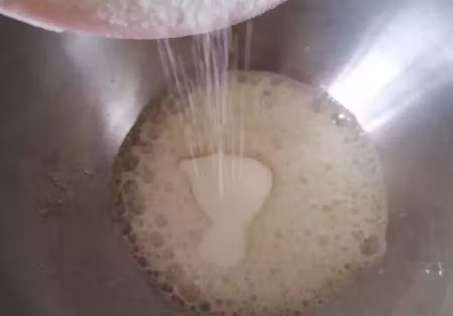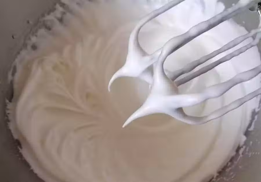 注意:蛋白裡加入幾滴檸檬汁,一個是可以去腥味,再一個可以增加蛋白的穩定性,也提高成功率,如果沒有檸檬可以用白醋代替。