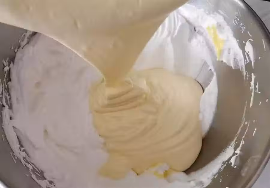 注意:在做蛋糕時,翻拌手法也很重要,不要畫圈攪拌,要上下翻拌或者「Z」形切拌。