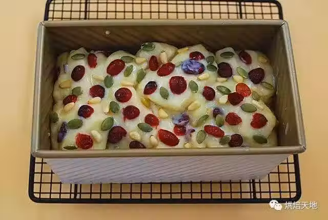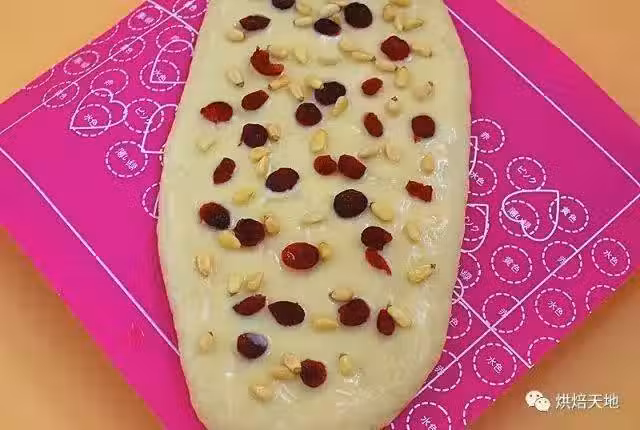 7.撒上一些泡過水或酒後的蔓越莓干,大松子仁等,當然不放也可以。