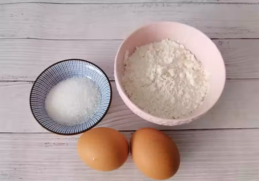 1、這個脆皮蛋糕食材很簡單,不需要牛奶或者水和油,雞蛋、白糖、蜂蜜、麵粉就夠了。