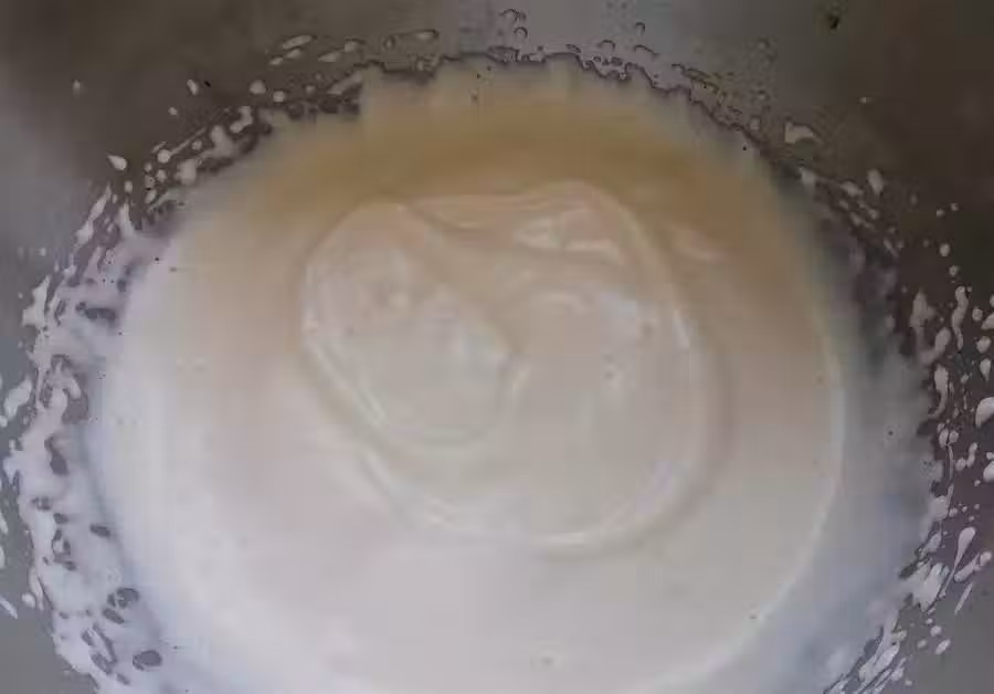 4、雞蛋打發到這樣,畫圈的紋路,五六秒不會消失,雞蛋就打發好了。