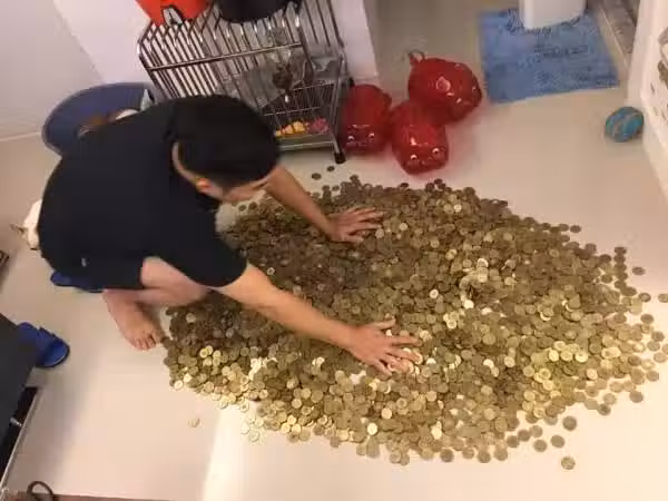 有趣的是,他曾把總計4萬元的50元硬幣拿去臨櫃存款,結果被行員念了一頓,