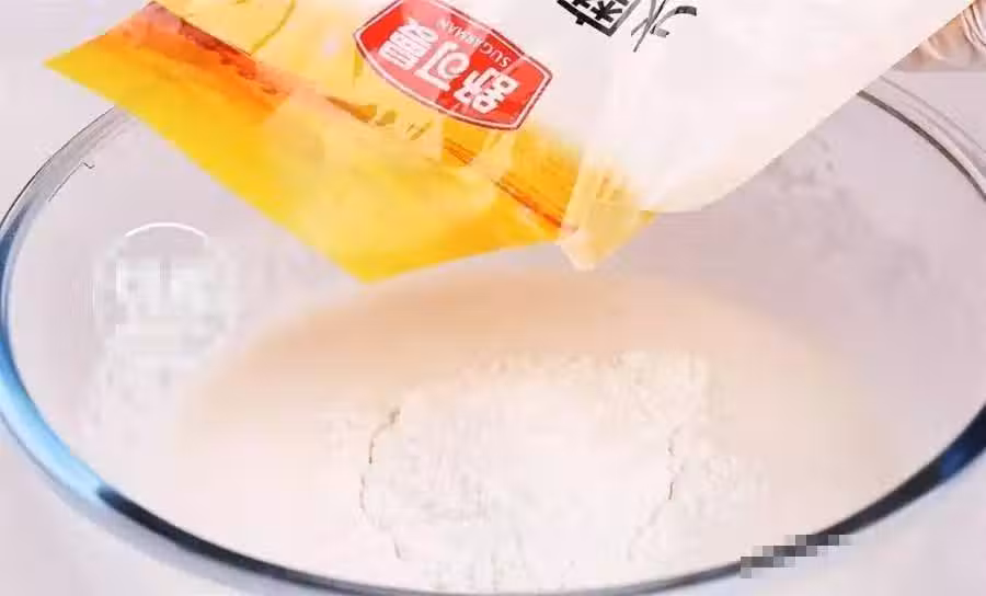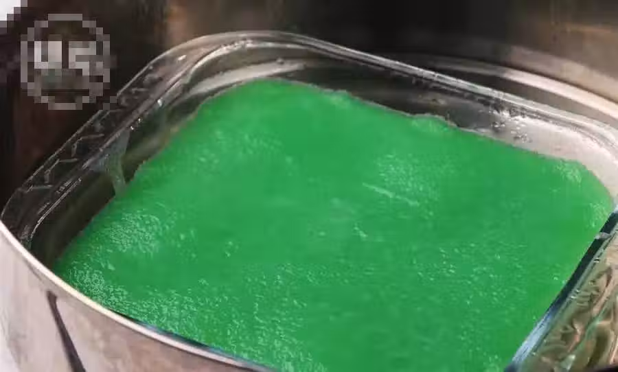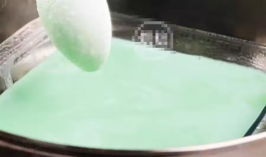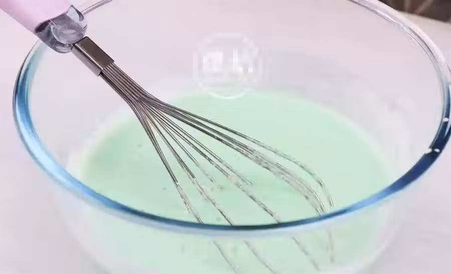 把混合好的漿液,分成兩份,一份原色,另一份加入2g斑斕香精,攪拌均勻。