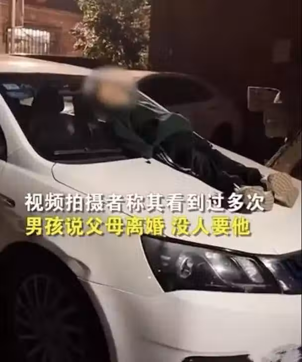 熱心的視頻作者詢問了小男孩,原來這個躺車上睡覺的孩子剛剛9歲,有父有母,但是父母因為感情問題離婚了,雙方都不願意要他,於是將他趕出家門,他已經在外流浪半月有餘。