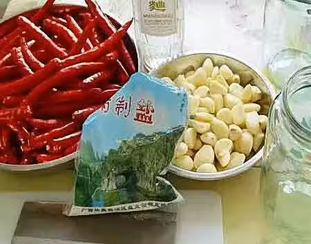 辣椒、蒜、鹽、高度酒(注意,必須是高度的)、瓶子