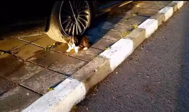 女孩的車就停在旁邊,女孩喂完狗子就去辦別的事情了,也沒有多想什麼,以為它吃飽了就會離開的,而接下來發生的事情才讓女孩下決心收養它。
