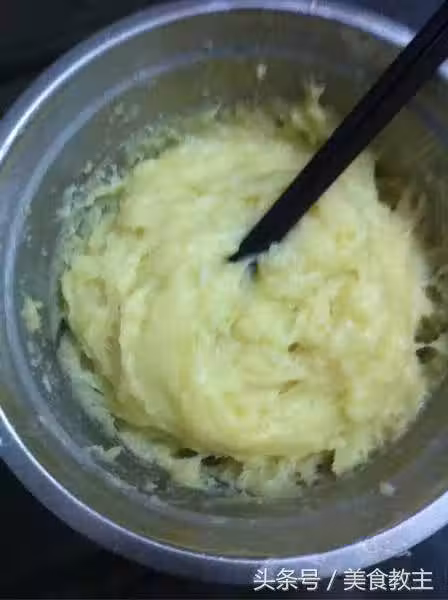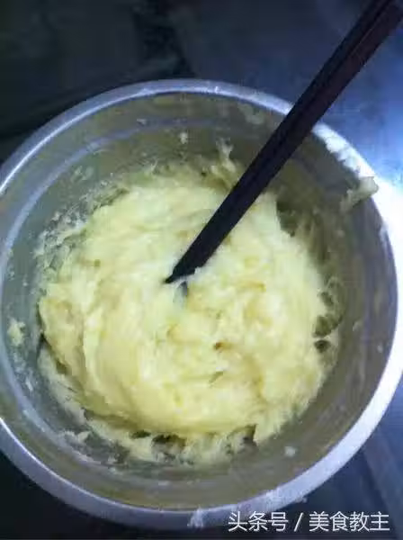蒸熟後取出順時針攪拌,放至不燙手 攪拌至粘滑