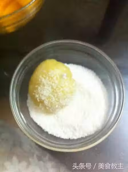 準備材料:糯米粉270g、玉米腚粉30g、白糖150g、黃油45g、椰漿200G、牛奶200g, 蛋黃兩個