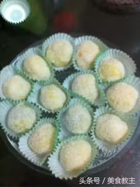 家裡沒有紙托的可以直接裝盤就好了,因為沾了椰蓉,所以不會粘手也不怕沾一起 紅豆餡的也一樣包哦!
