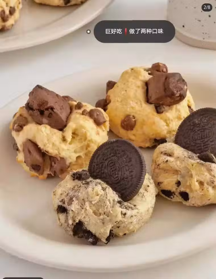 外酥內軟,一次可以做好幾種口味!奧利奧碎,巧克力碎脆脆的夾在裡面,哇哦