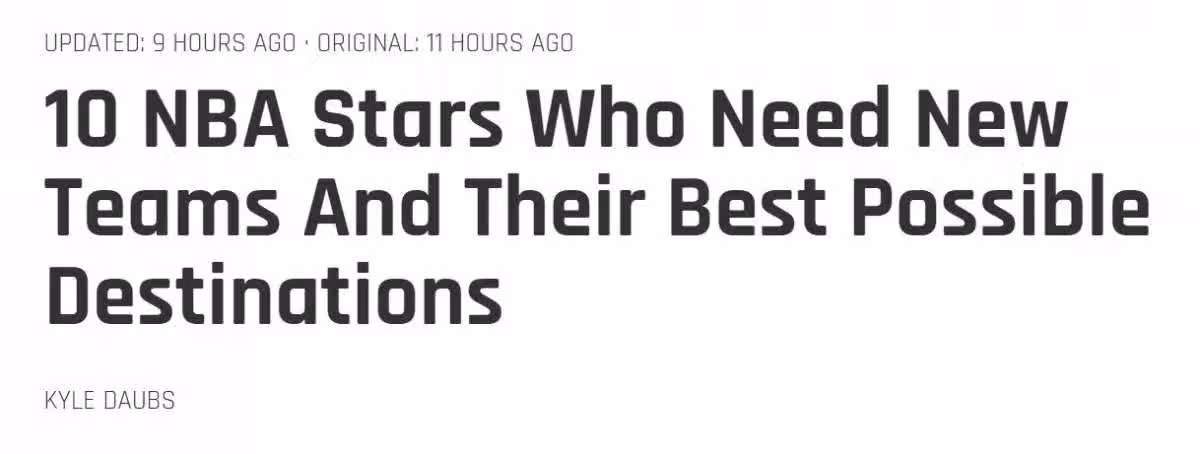 為此,美媒《fadeawayworld》近日列出10名將更換下家的球員,其中沃爾重返奇才,勇士5換1艾頓。