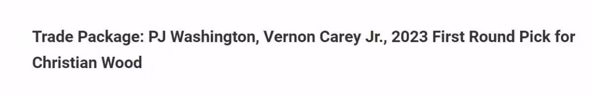 潛在交易方案:火箭送走伍德,從黃蜂得到pj華盛頓+小弗農-凱里+2023年首輪簽。
