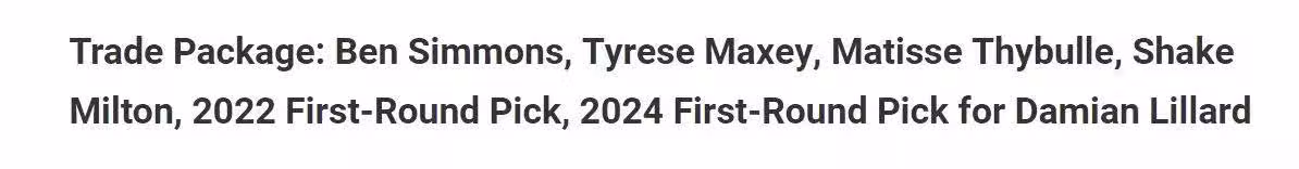 潛在交易方案:開拓者送出利拉德,從費城得到本西蒙斯+馬克西+塞布爾+米爾頓+2022年首輪簽+2024年首輪簽。