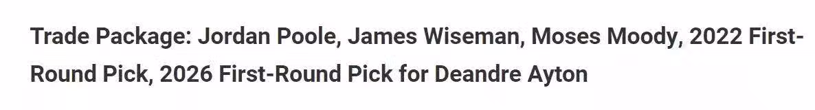 潛在交易方案:勇士送走普爾+懷斯曼+穆迪+2022年首輪簽+2026年首輪簽,從太陽得到艾頓。