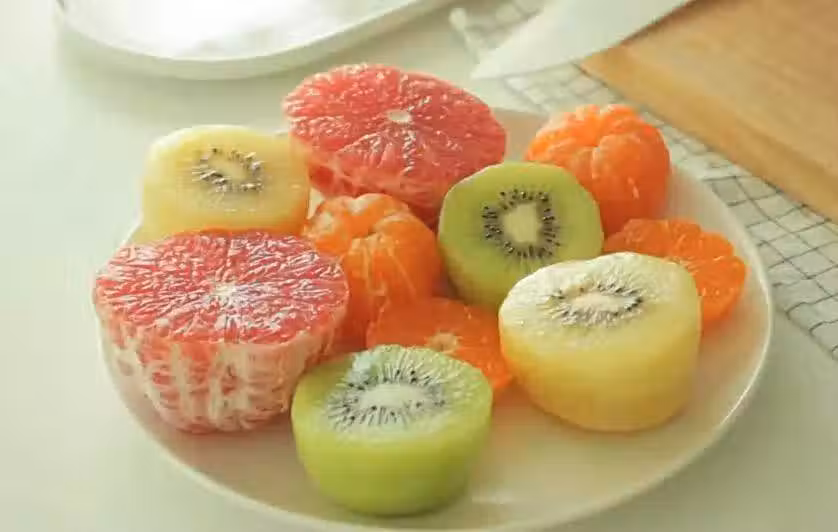 首先準備水果們~~這裡用了幾種酸甜味的水果,顏色上也很和諧,比如紅色柚子、黃、金色奇異果,當然你也可以用自己喜歡的水果。