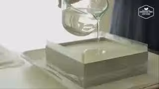將酸奶慕斯液倒在蛋糕片上,抹平後放入冰箱冷藏30-40分鐘~