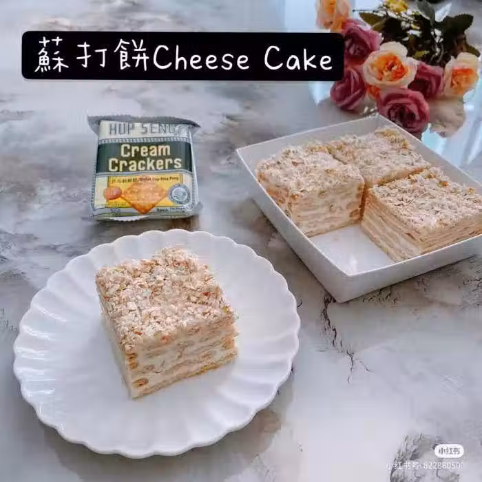 小紅書博主_可類鵝呃Claire就用了大馬國民下午茶必備的蘇打餅,做出了超好吃的蛋糕,而且不必任何烘培技巧就能完成這兩道甜點。