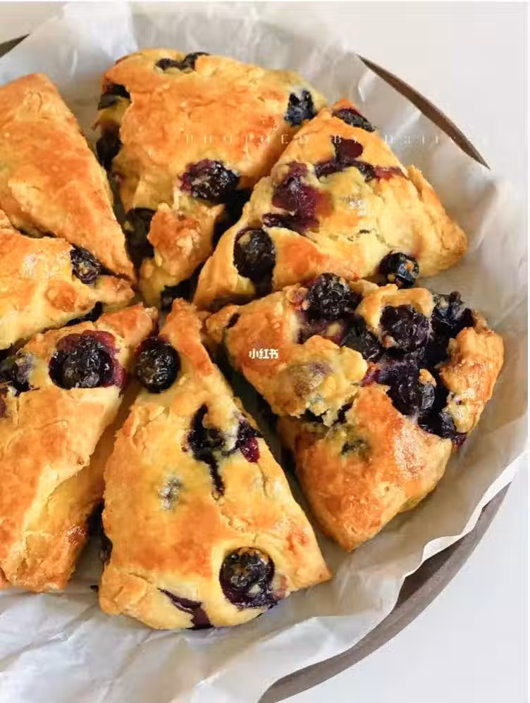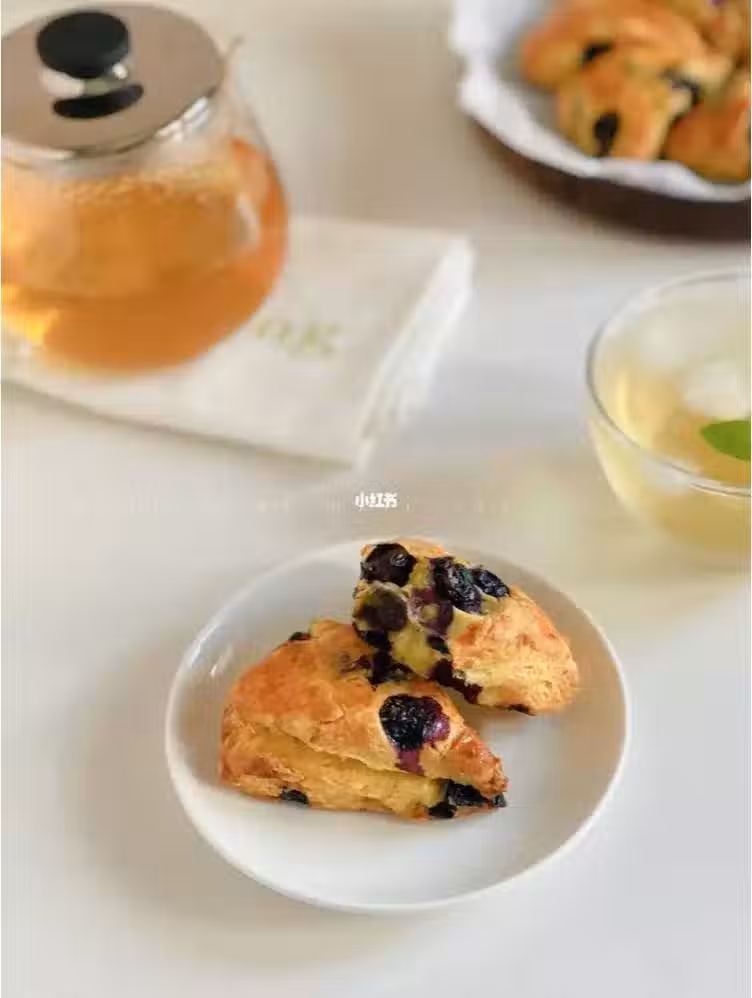 一粒粒的藍莓在司康上是不是看了都會流口水?藍莓司康當作早餐絕對是精緻女孩的最愛。想吃的仙女一定要把這個食譜保存下來啊!