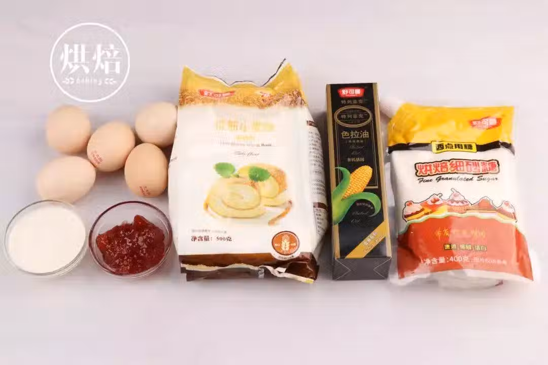 將蛋糕糊倒入鋪了油紙的烤盤(28cm*28cm)中,表面抹平,輕輕振去大氣泡,送入預熱好的烤箱,上下火160度烘烤15分鐘左右,每家烤箱脾氣不一樣,溫度和時間僅做參考。
