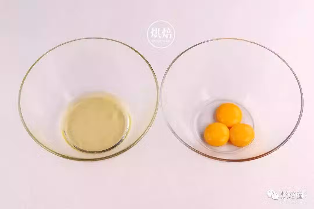 準備乾淨的無油無水的盆,將蛋黃和蛋清分離。