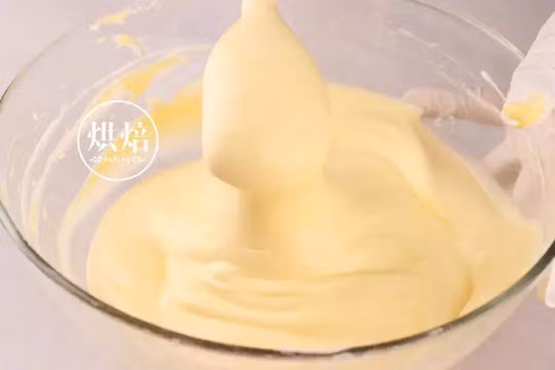 加入低筋麵粉,攪拌至無乾粉的狀態,備用。