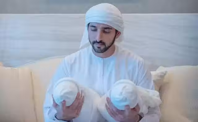 杜拜王室最重要的事莫過於生孩子,不久前,哈曼丹在社交媒體賬號上曬出了一張照片:龍鳳胎出生,他左右手各一個嬰兒,一副滿足又幸福的樣子。