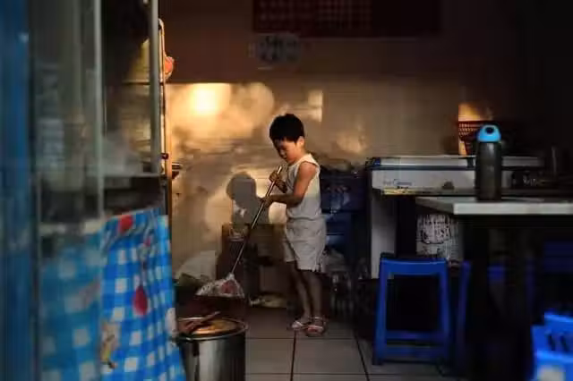 窮人的孩子早當家,放學回來後孩子就在店裡寫作業,有客人來的時候幫著媽媽端菜、收拾桌子,一直忙碌過吃完晚飯的時間,等不會有人來吃飯的時候,她們母女兩個才回家,而等天剛亮甚至沒亮又開始了第二天的忙碌......
