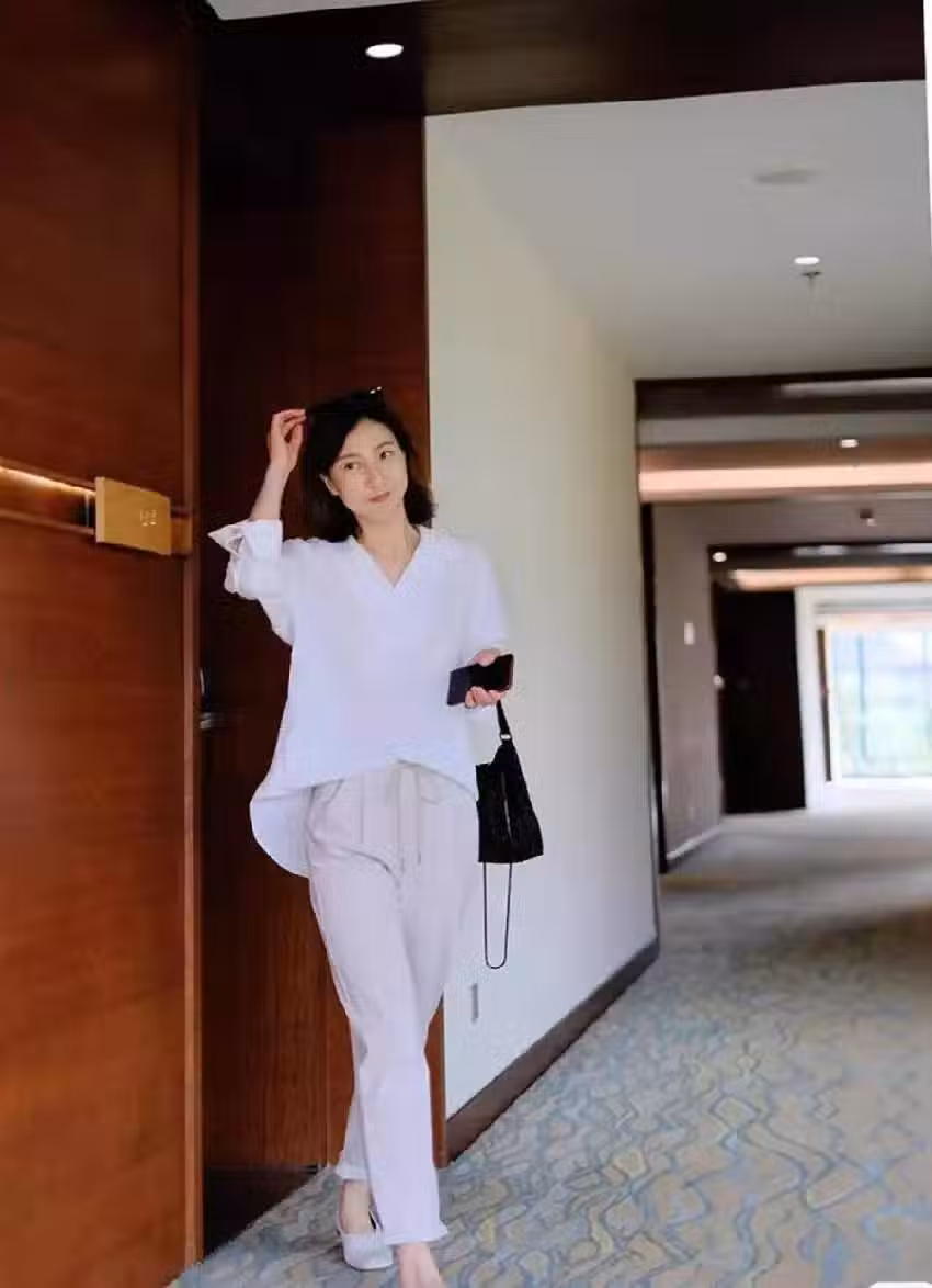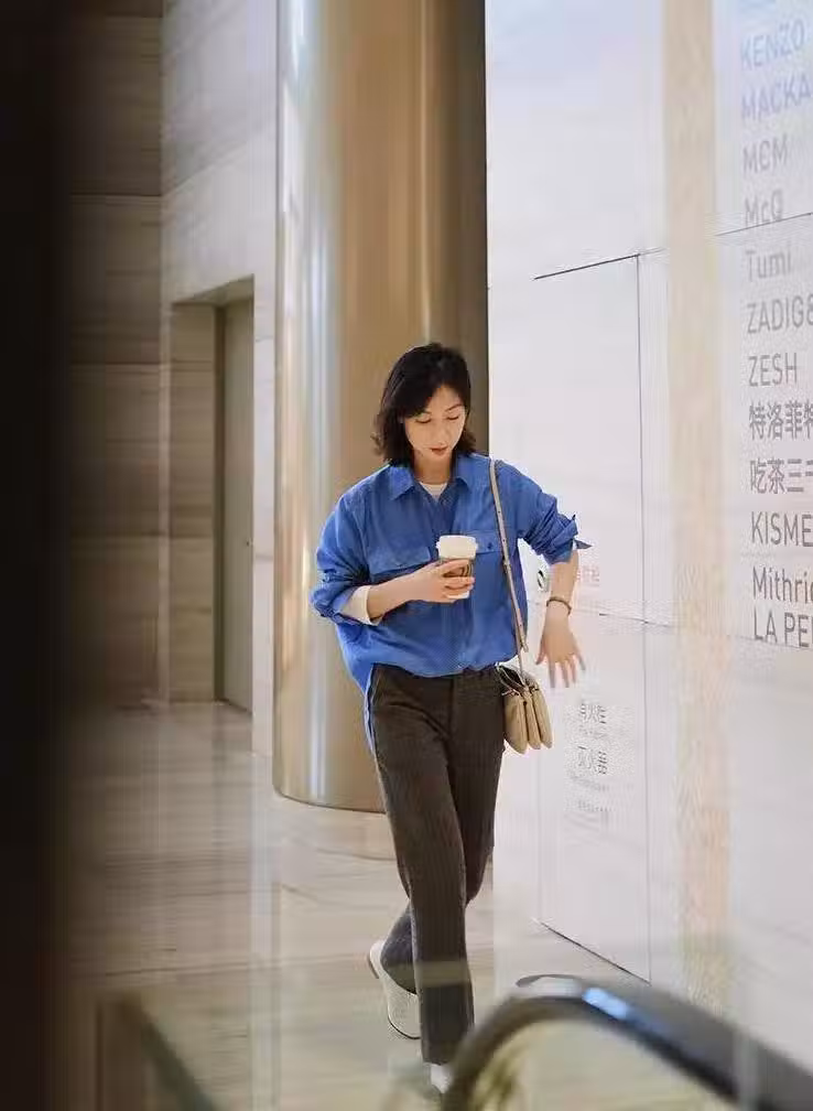 全身暗、一點花,除了服裝的花色之外,色彩也是如此。 通過深色與淺色的搭配,讓穿著看上去不至於那樣沉悶,例如這一身,一件奶奶衫、一件西裝外套、一條白色闊腿褲。沉悶的深藍色與簡單純潔的白色,將白色放在下裝能讓著裝更顯「輕」。